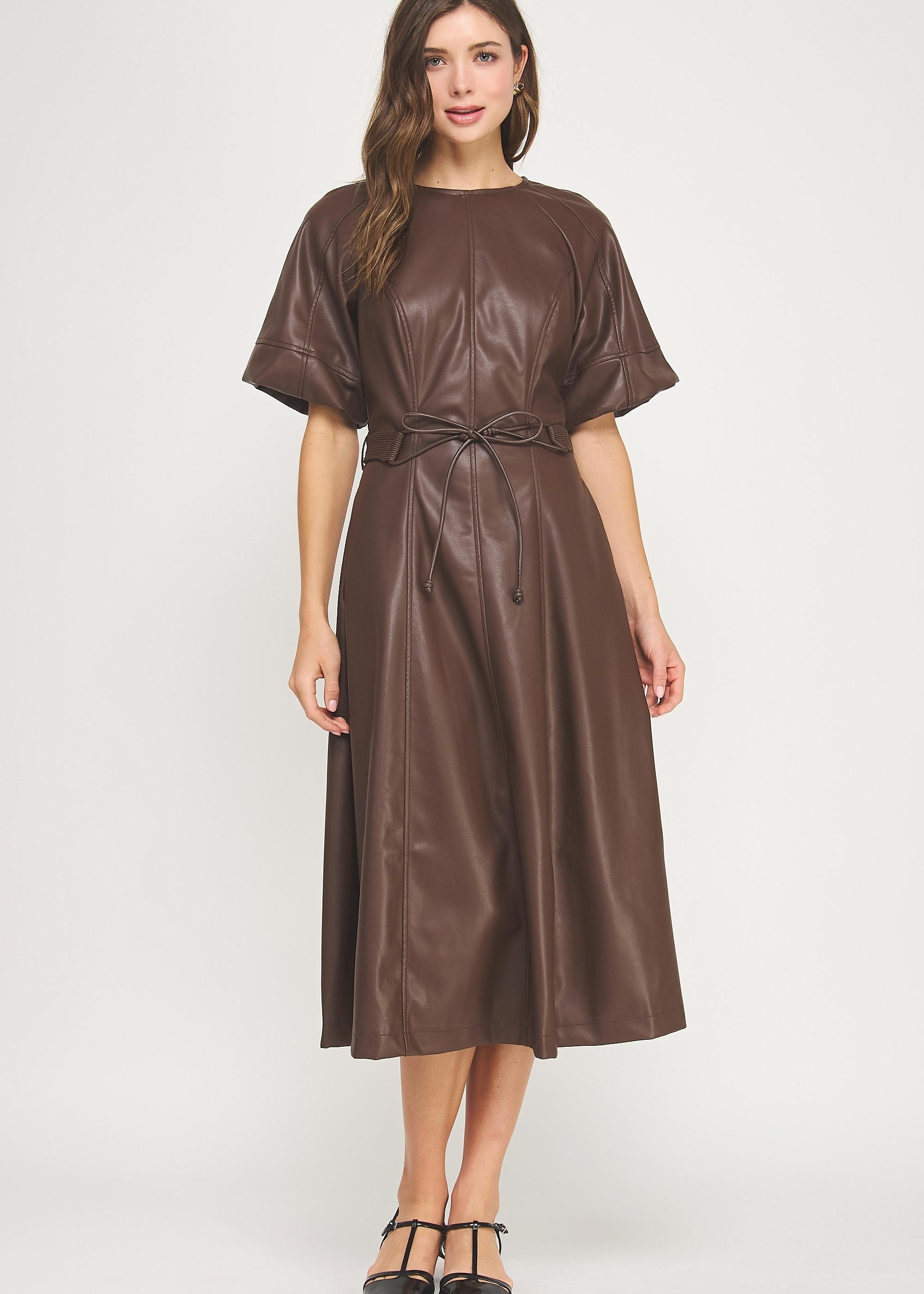 Faux Leather Long Mocha Mousse Dress