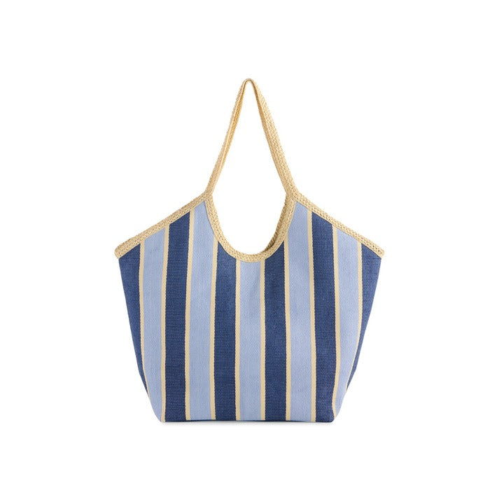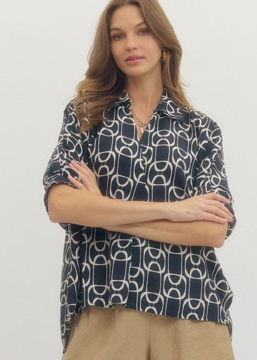 THML Beige Print Top with Lt. Blue Stripe Trim