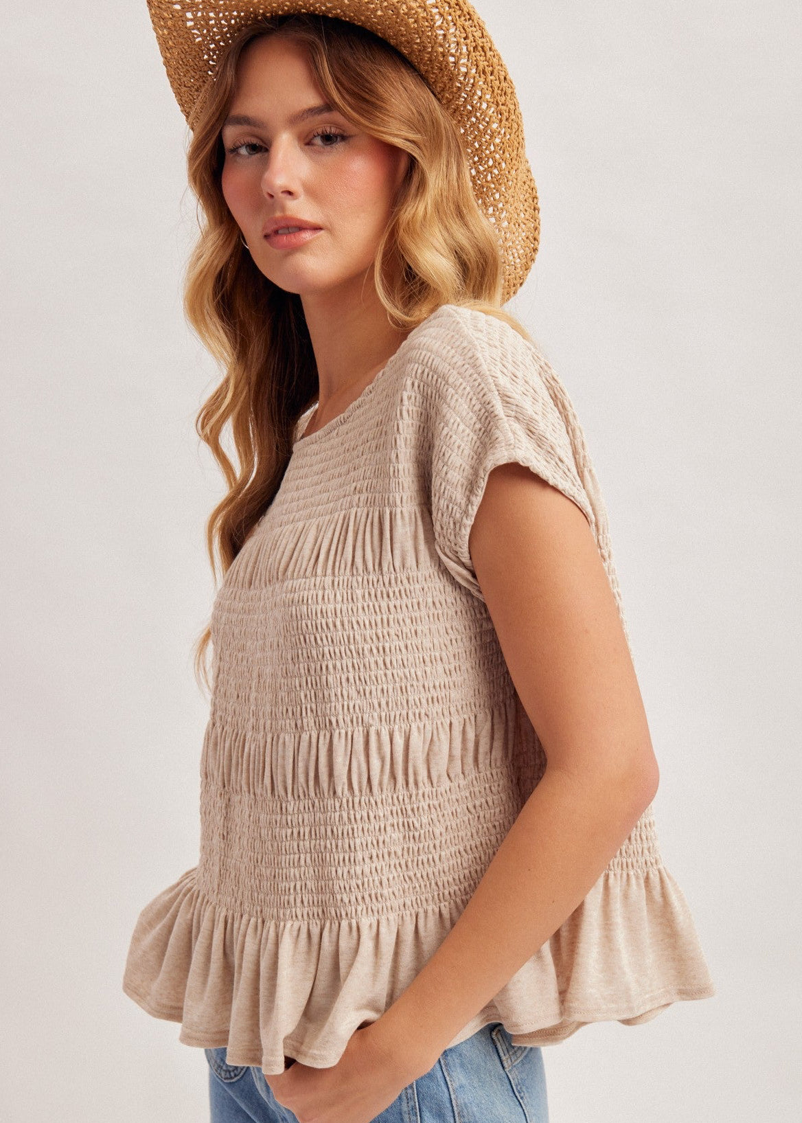 Sleeveless Sweater w/Faux Tie - Oatmeal