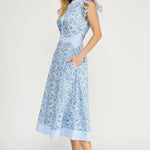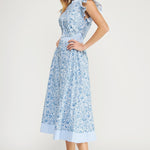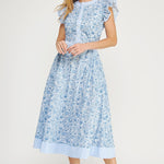 Soft, feminine, and effortlessly charming this midi is the kind of dress you wear for all your occasions! Wear it on spring break and then wear it to graduations, brunch, bridal and baby showers. The delicate blue toile-inspired print, fluttery ruffle sleeves, and flattering midi length will make you reach for it again and again.