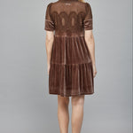 Brown Velvet Dress with Sheer Mesh Panel