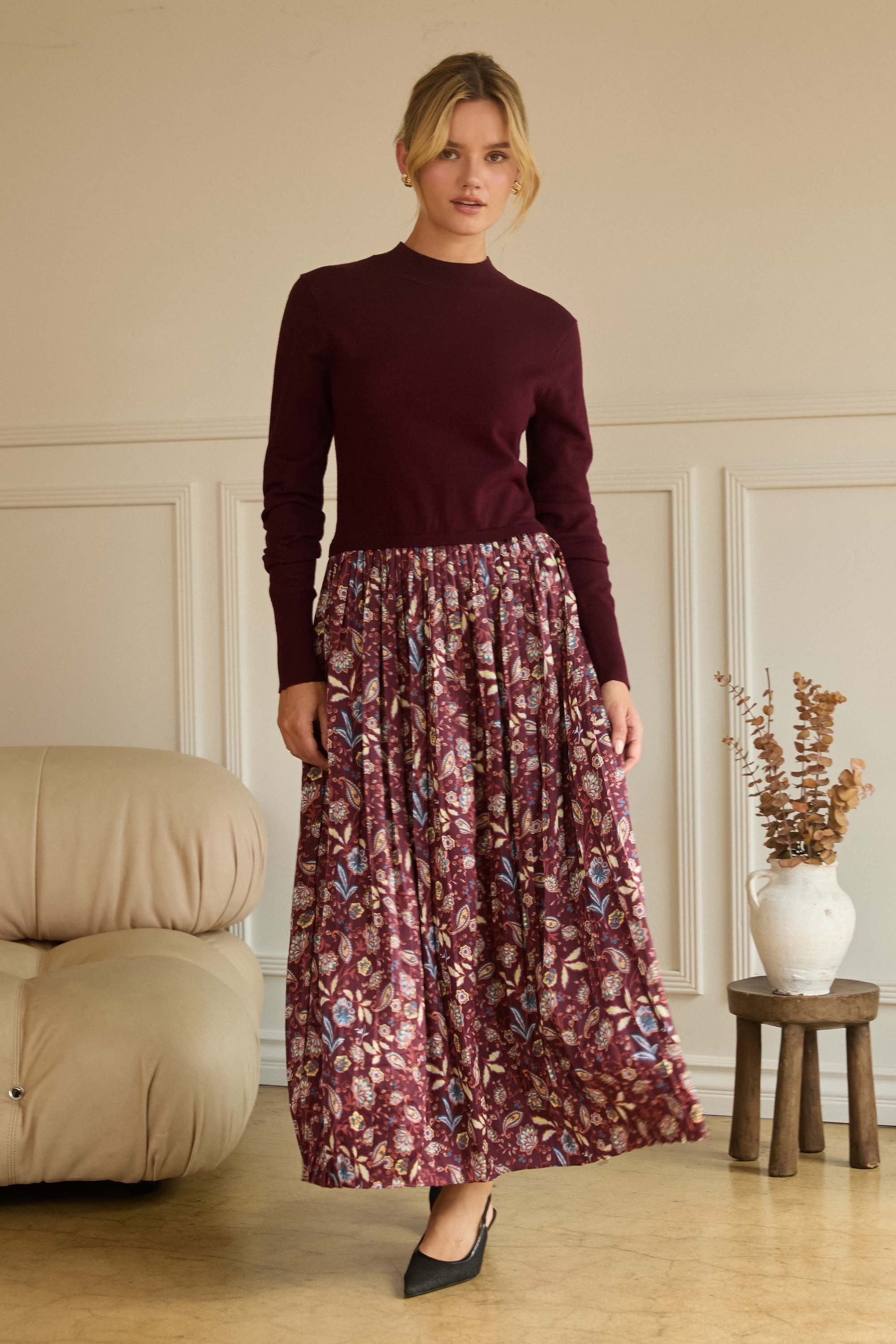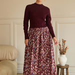 Cozy meets chic in this beautifully designed winter dress, featuring a soft burgundy sweater-knit top paired with a stunning pleated skirt in a coordinating burgundy patterned fabric. With its effortless blend of comfort and sophistication, this one-piece look is perfect for holiday gatherings, winter date nights, or elevating your everyday style.