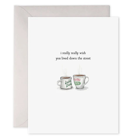 Dream street. We talk about it all the time. Who would you pick? Pretty much everyone needs to buy this card when they see it, their minds daydreaming of which friends they can just waltz in on, morning coff in hand. Oh, it's the best daydream!
