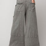 - Wide leg with exposed seams