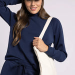 Made to wear everywhere, this classic mockneck is featured in a drapey scuba fabric that is super sueded and soft! Pair with the Kia Pant to complete the set.