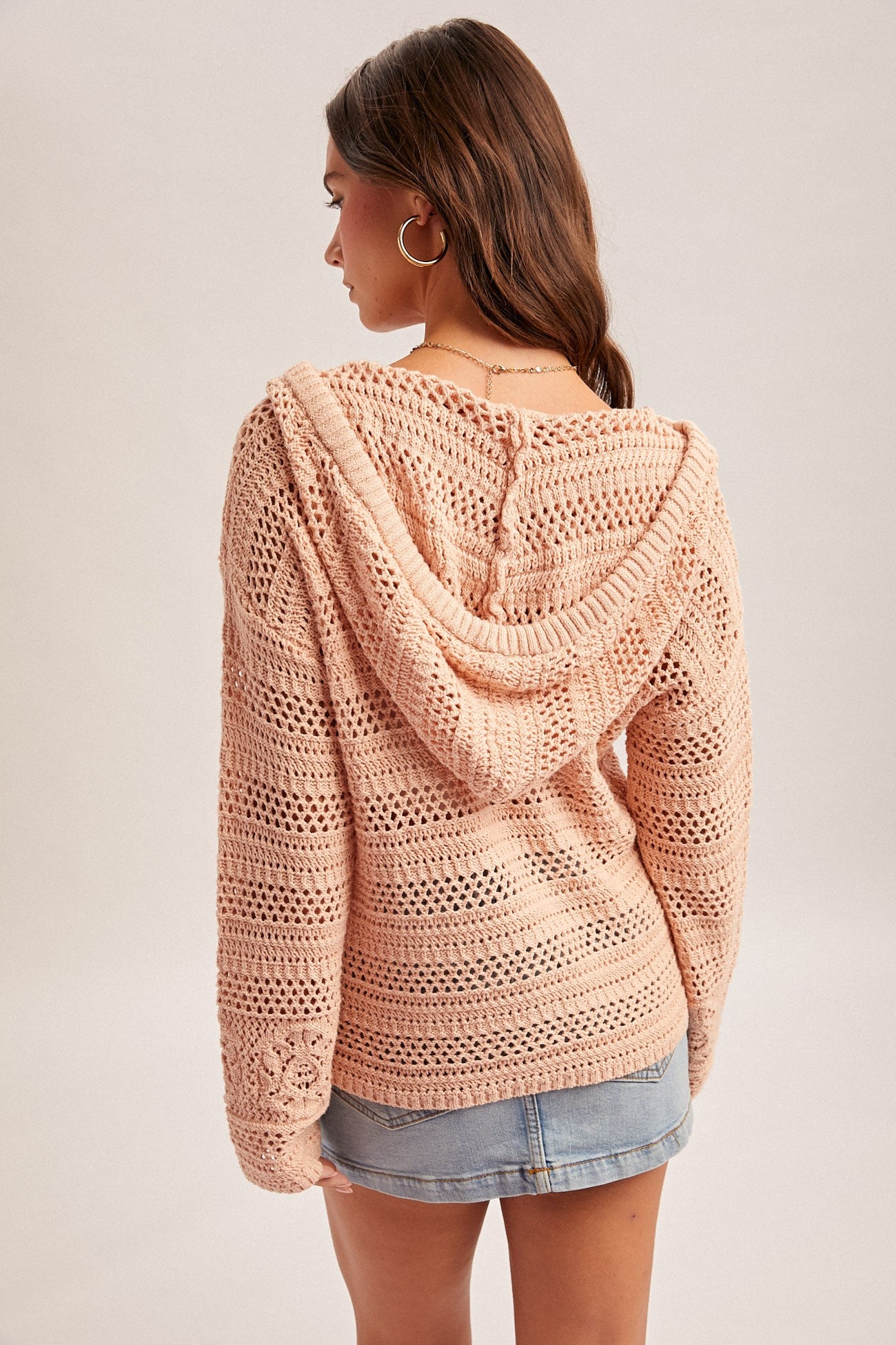 Pink Crochet Hoodie Sweater