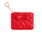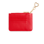 Featuring a rich red vegan leather and a gold heart zipper pull, this mini card holder keeps your essentials stylishly organized without the bulk of a full wallet. Slip it into your tote, clutch,, or crossbody and go!