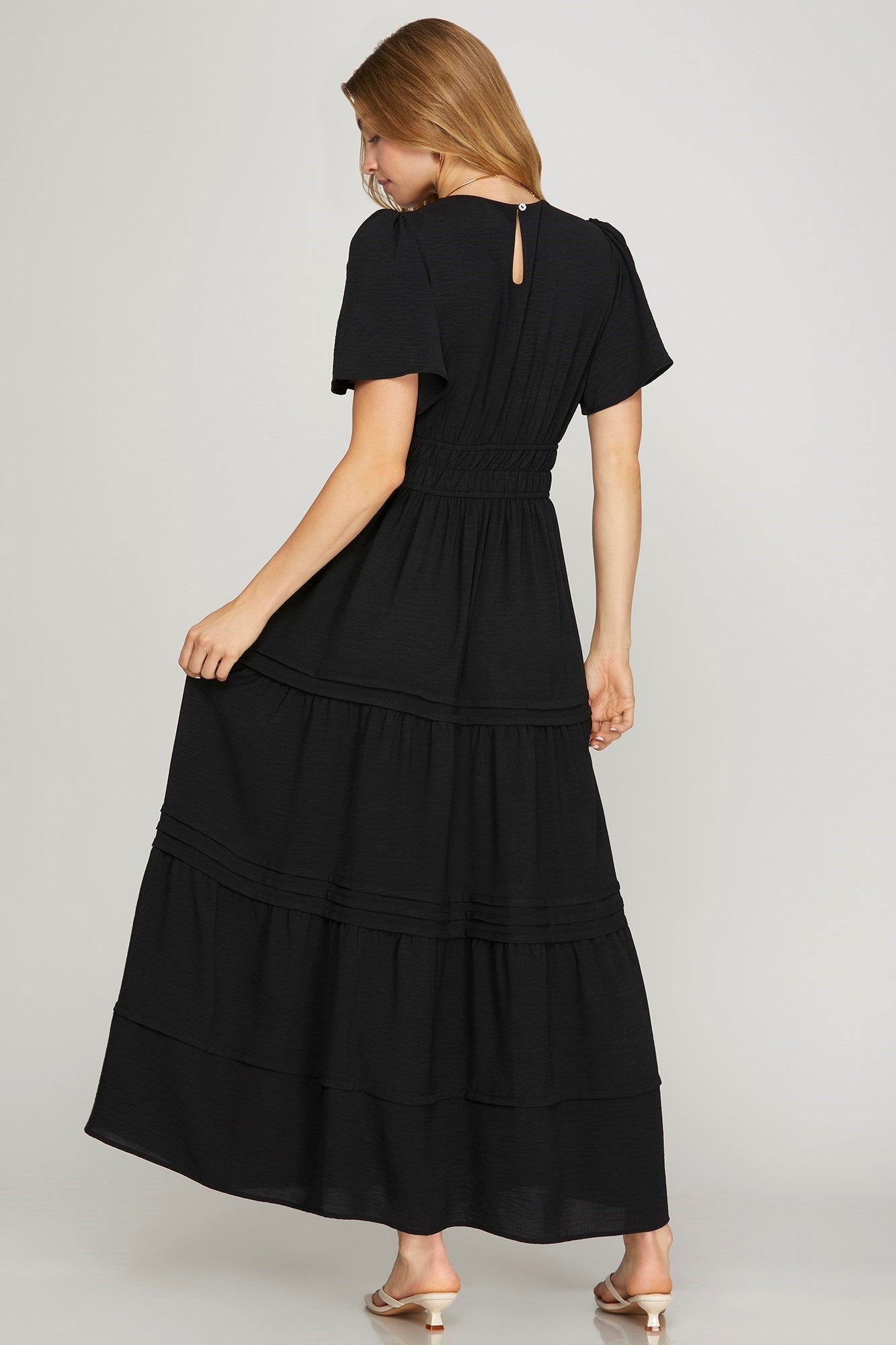 This season's "it" silohette! You've seen the same dress at the high end chain store for almost double the price! We love our version and we love our price! This will be the dress in your closet you snag for all your events and we love the slimming black color.