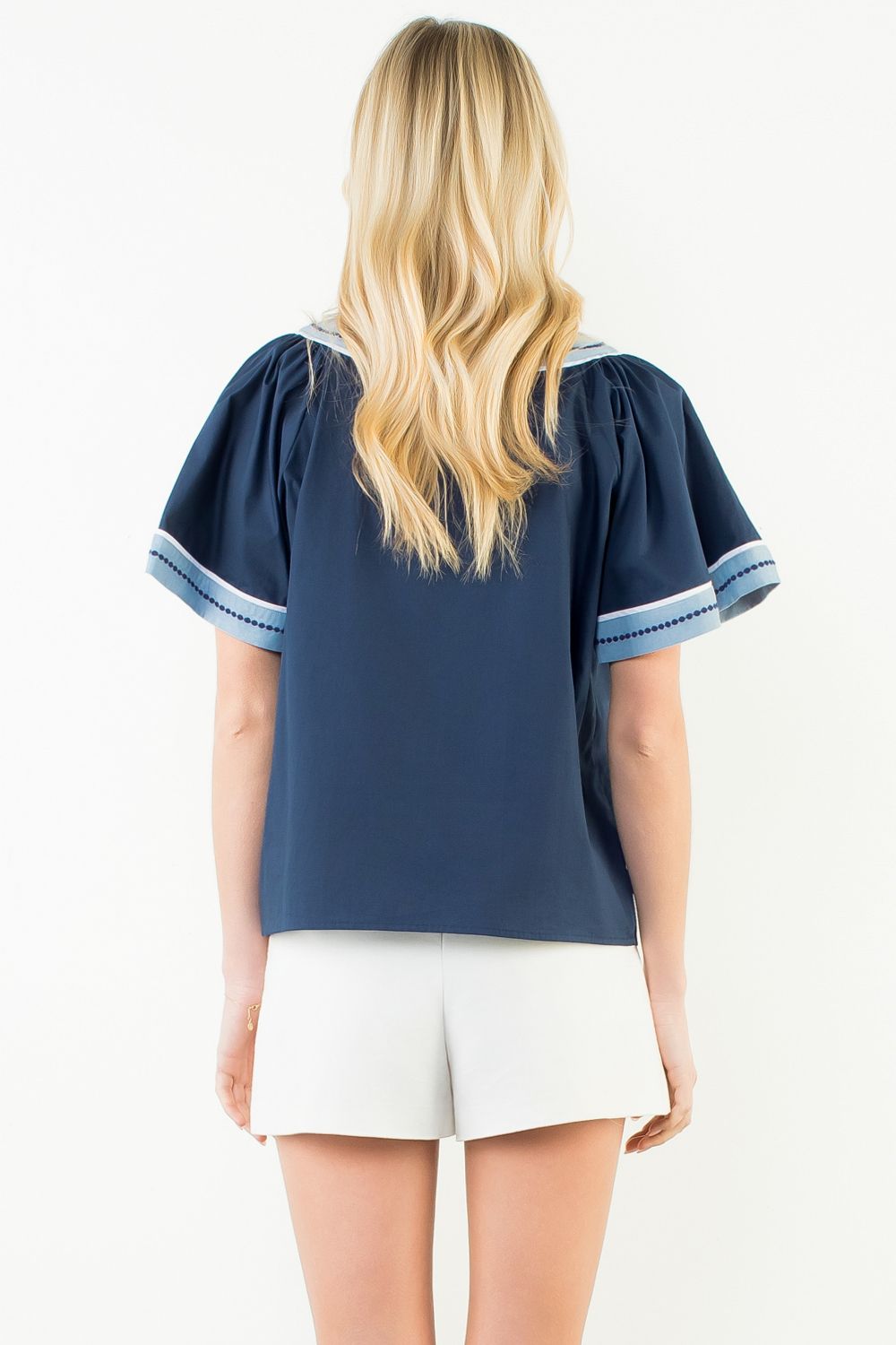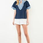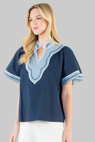 THML Blue Scallop Trim Top