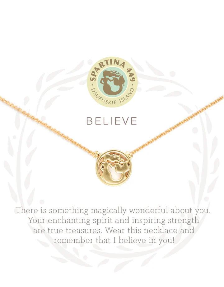 Wear our Believe Necklace as a reminder to see the magic. Featuring a mermaid charm, this special piece comes packaged inside a beautiful box with the message: "There is something magically wonderful, perfectly Spartina about you. Your enchanting spirit and inspiring strength are true treasures. Wear this necklace and remember that I believe in you!"