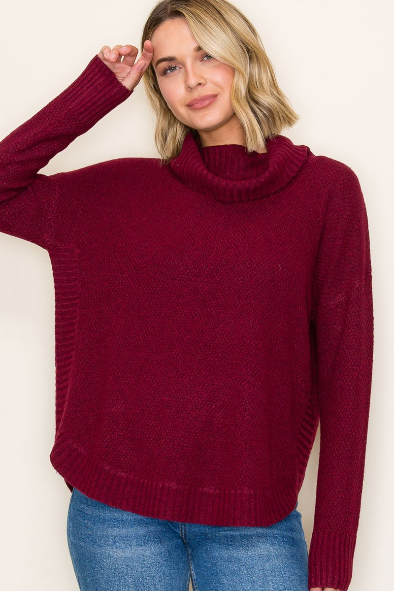 Wrap yourself in cozy style with our Cowl Neck Waffle Sweater in Burgundy! The cowl neck adds an effortlessly chic touch, while the waffle knit fabric keeps you warm and comfortable. Perfect for a casual day out!
